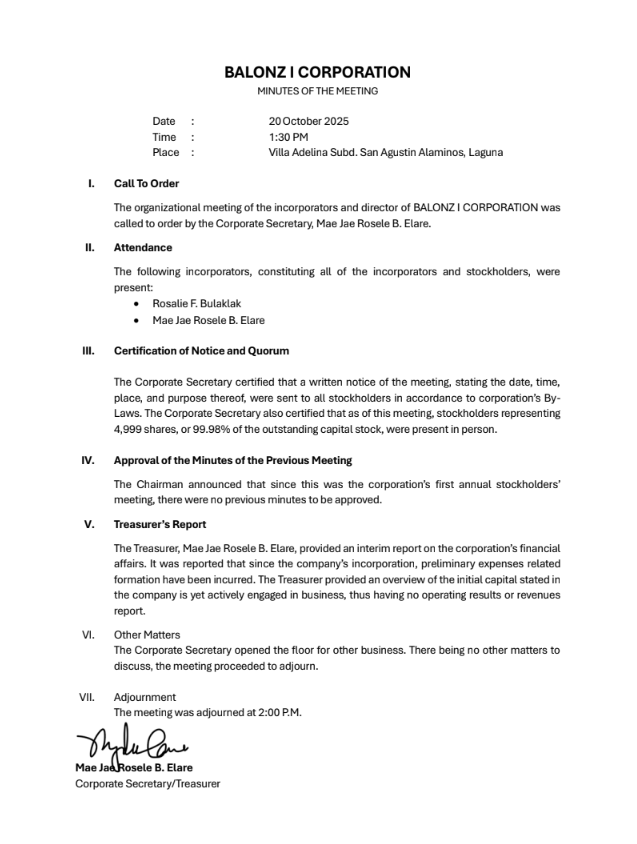 Balonz I Corp.